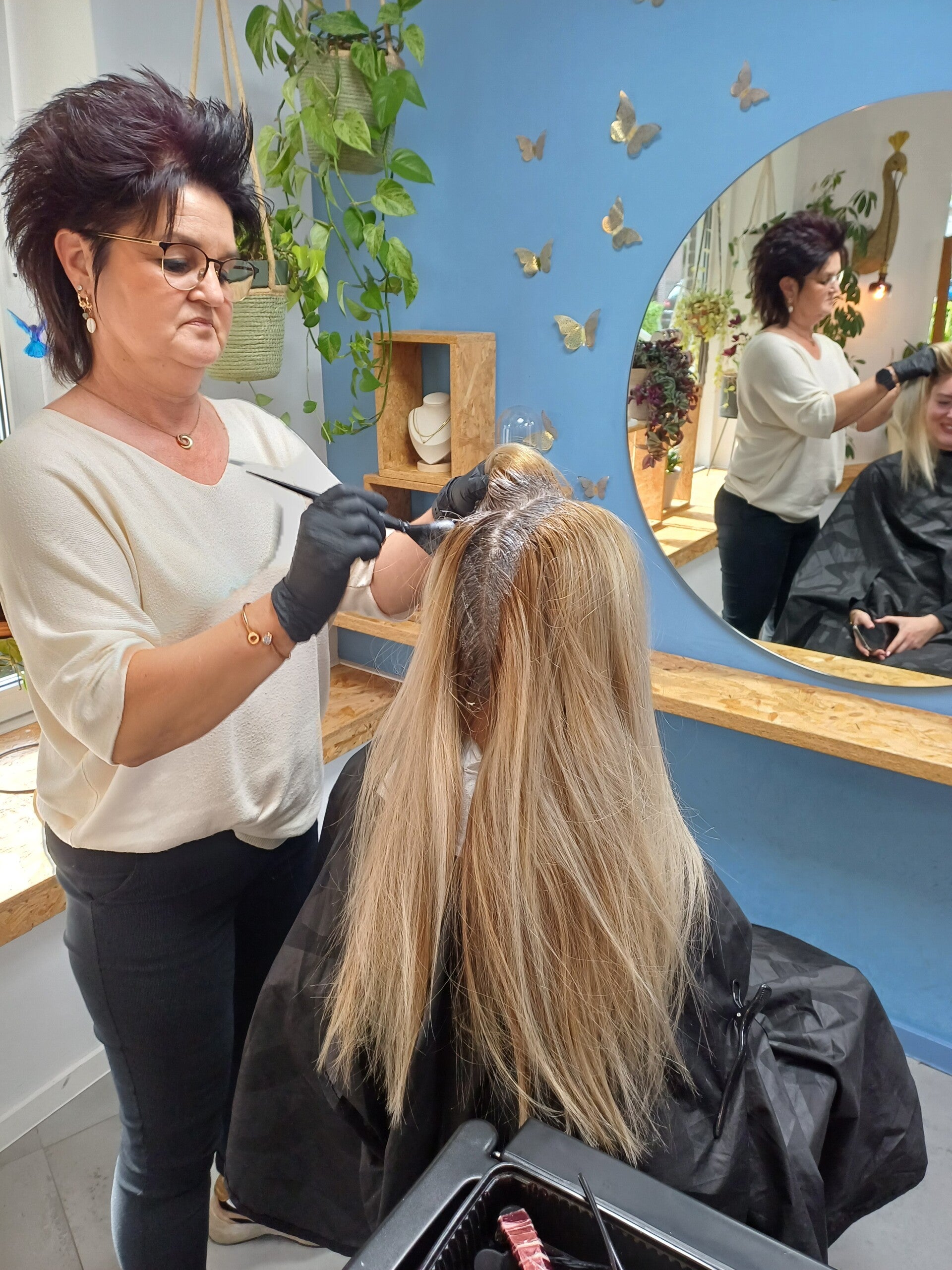 Wij zijn een toegewijd team dat zich inzet om uitzonderlijke ervaringen te creëren. Onze focus ligt op het leveren van betrouwbare en creatieve oplossingen, gedreven door respect voor kwaliteit en het geeft ons een prettig gevoel om een klant tevreden naar huis te laten gaan. Wij volgen dan ook regelmatig cursussen om mee te gaan met de laatste trends. Beneden is Jolanda op de foto in aktie is bij de cursus haarverven en kleurtonen in Landgraaf.